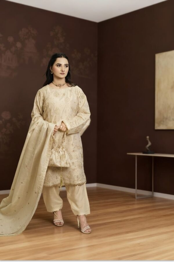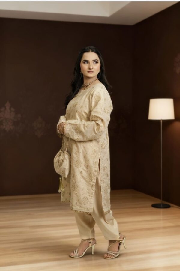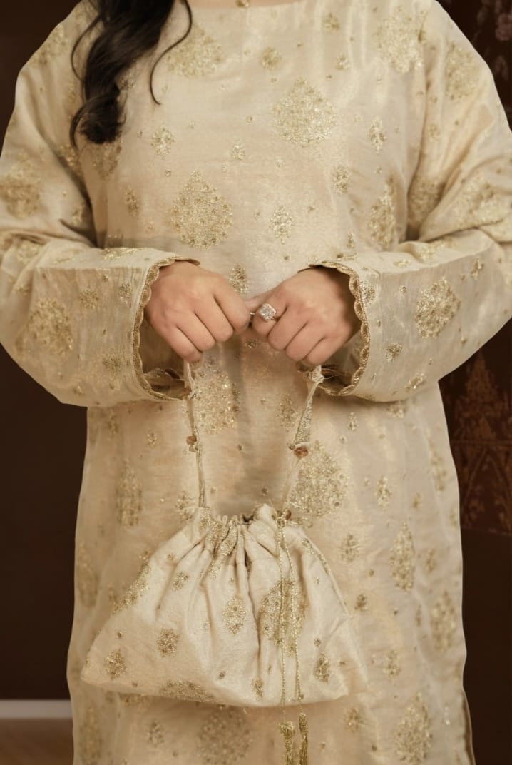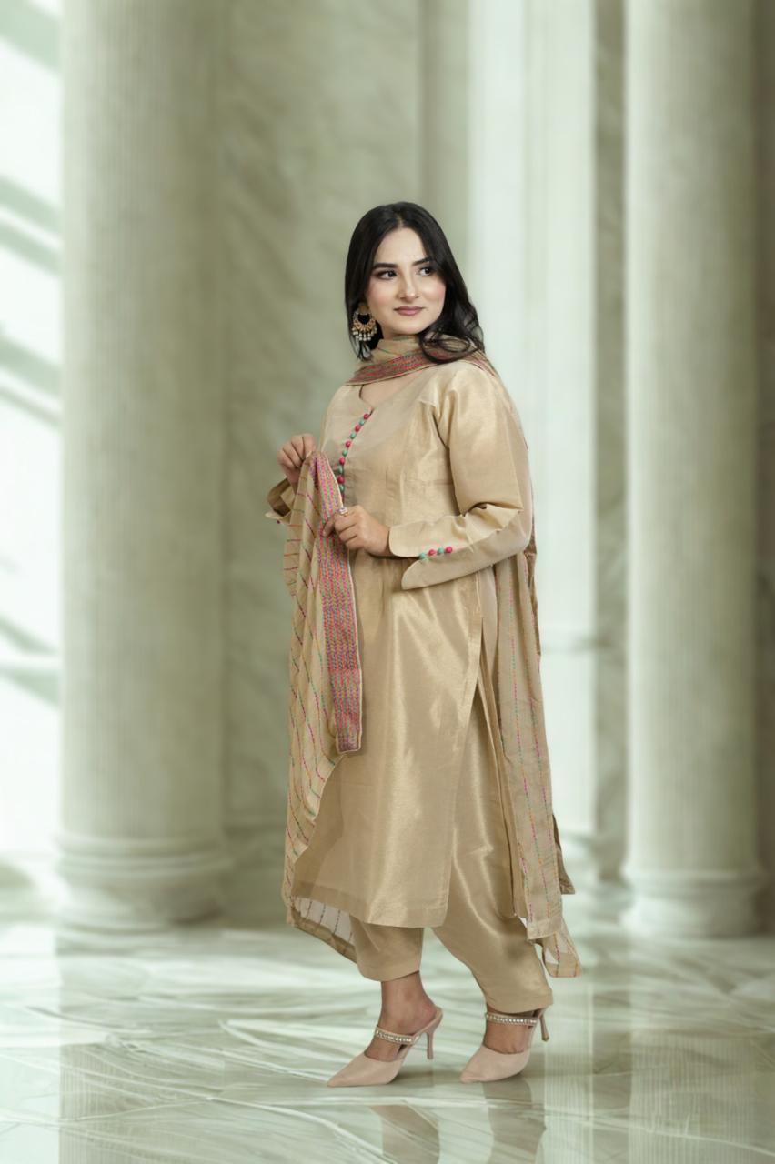 Kundan Zari 4-Piece Suit – Golden Elegance