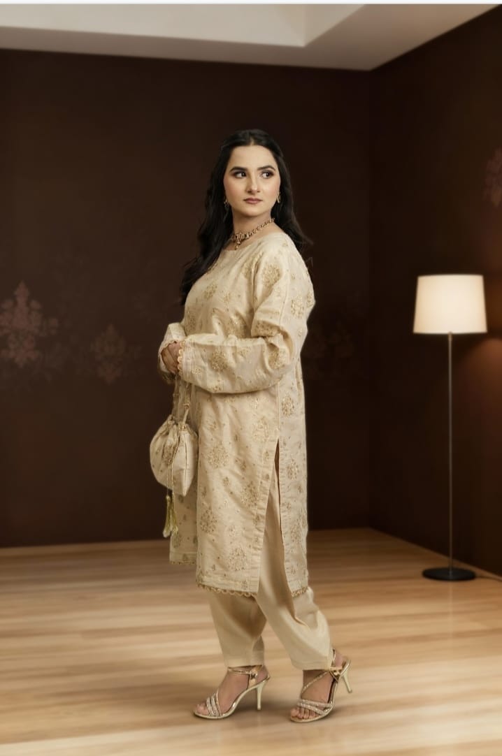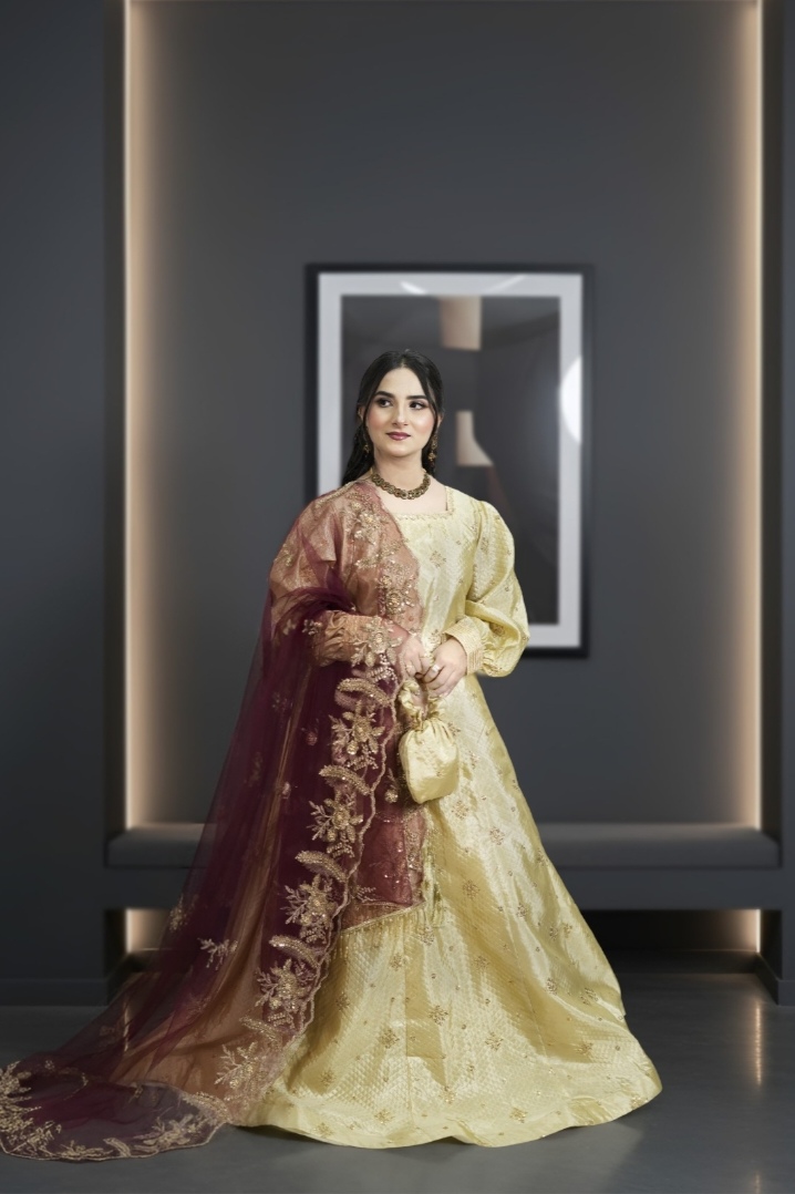 Crafted in a rich golden hue, this outfit brings out regal sophistication, perfect for weddings, festive dinners, and grand celebrations. 🌟