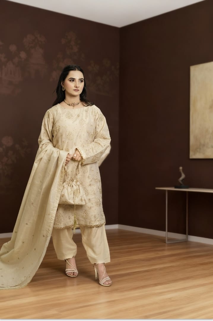 Drape yourself in timeless beauty with our Kundan Zari Suit, a masterpiece of luxury and tradition.