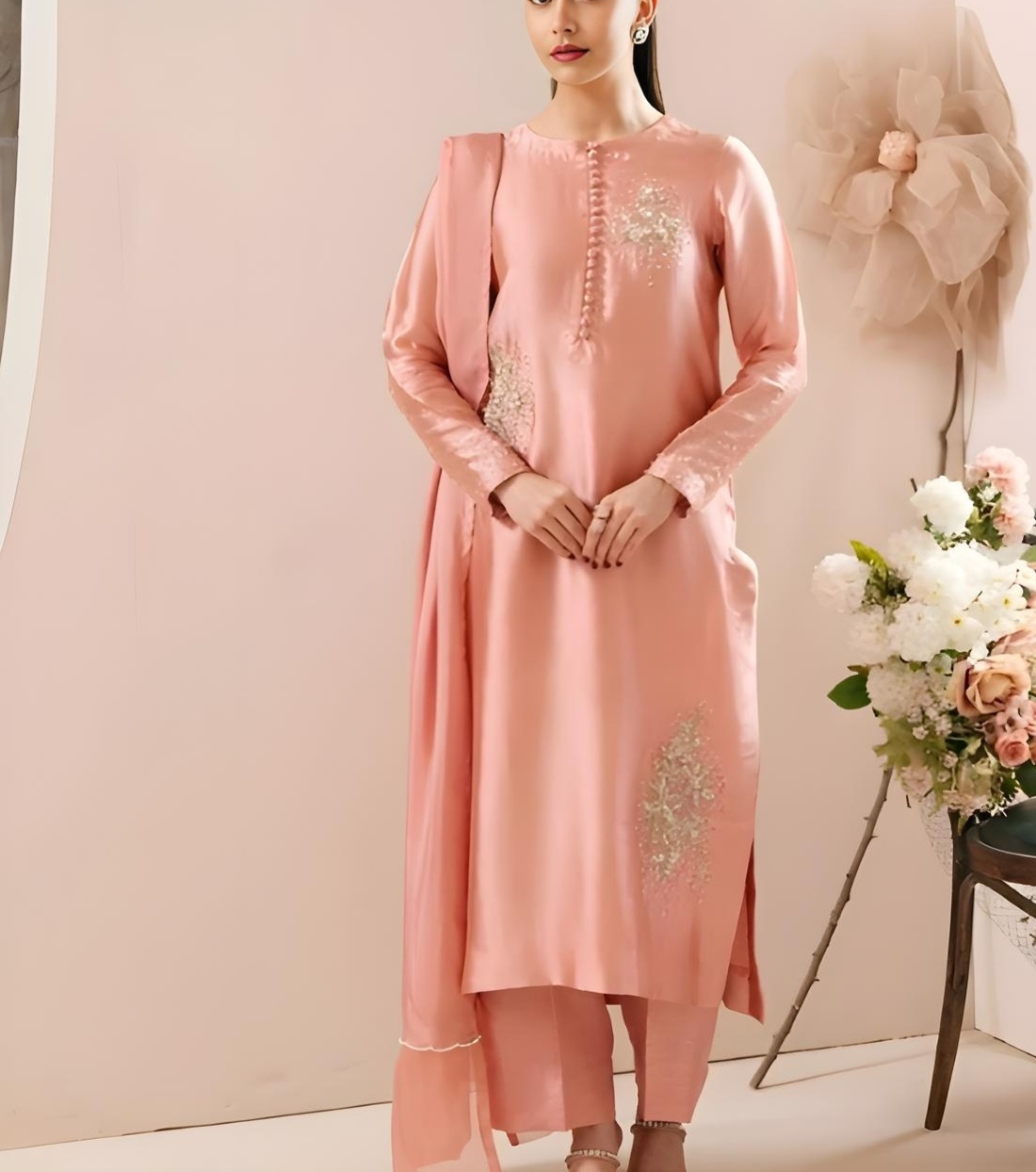 Silk 3-Piece Dress in a mesmerizing peach, light pink tone