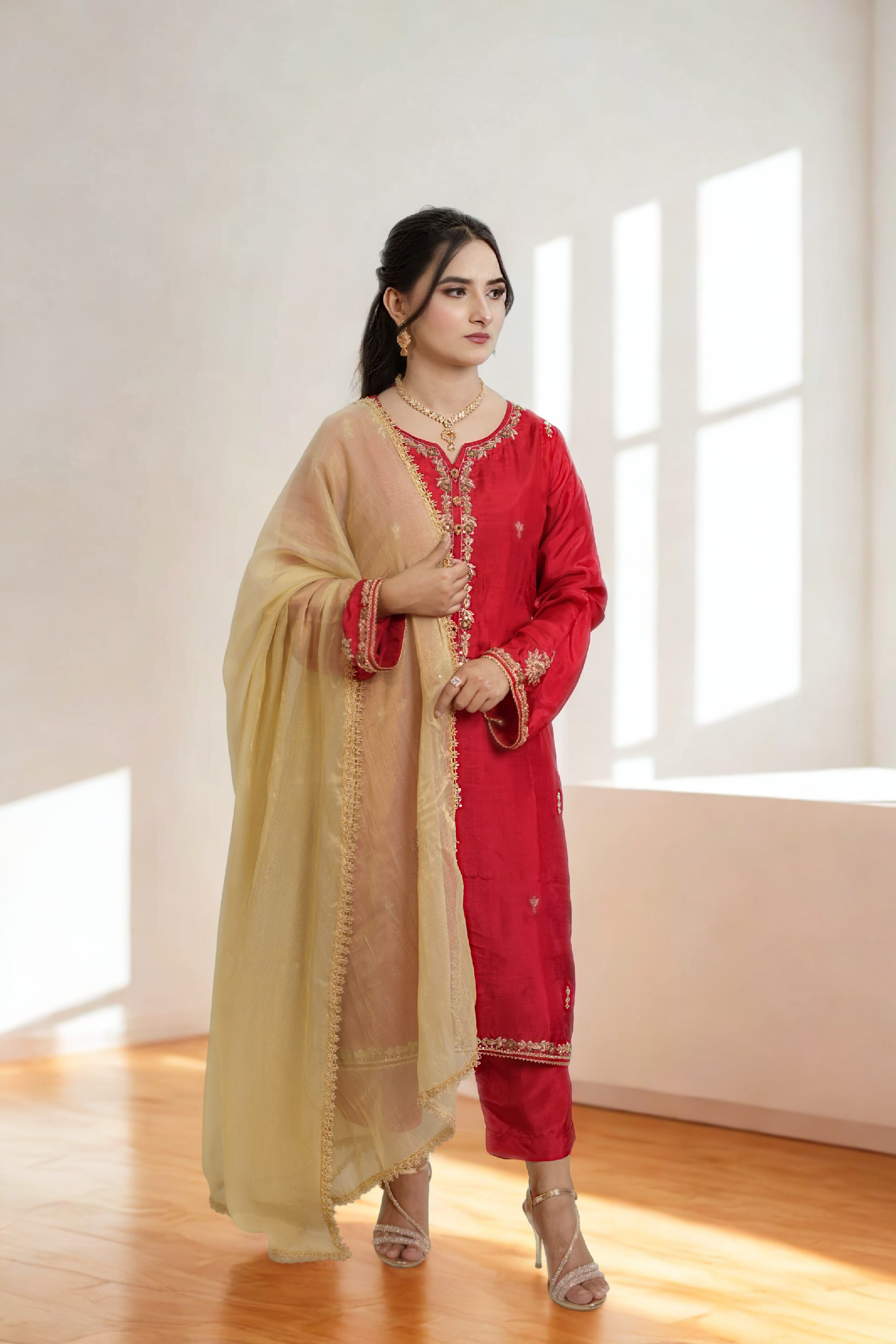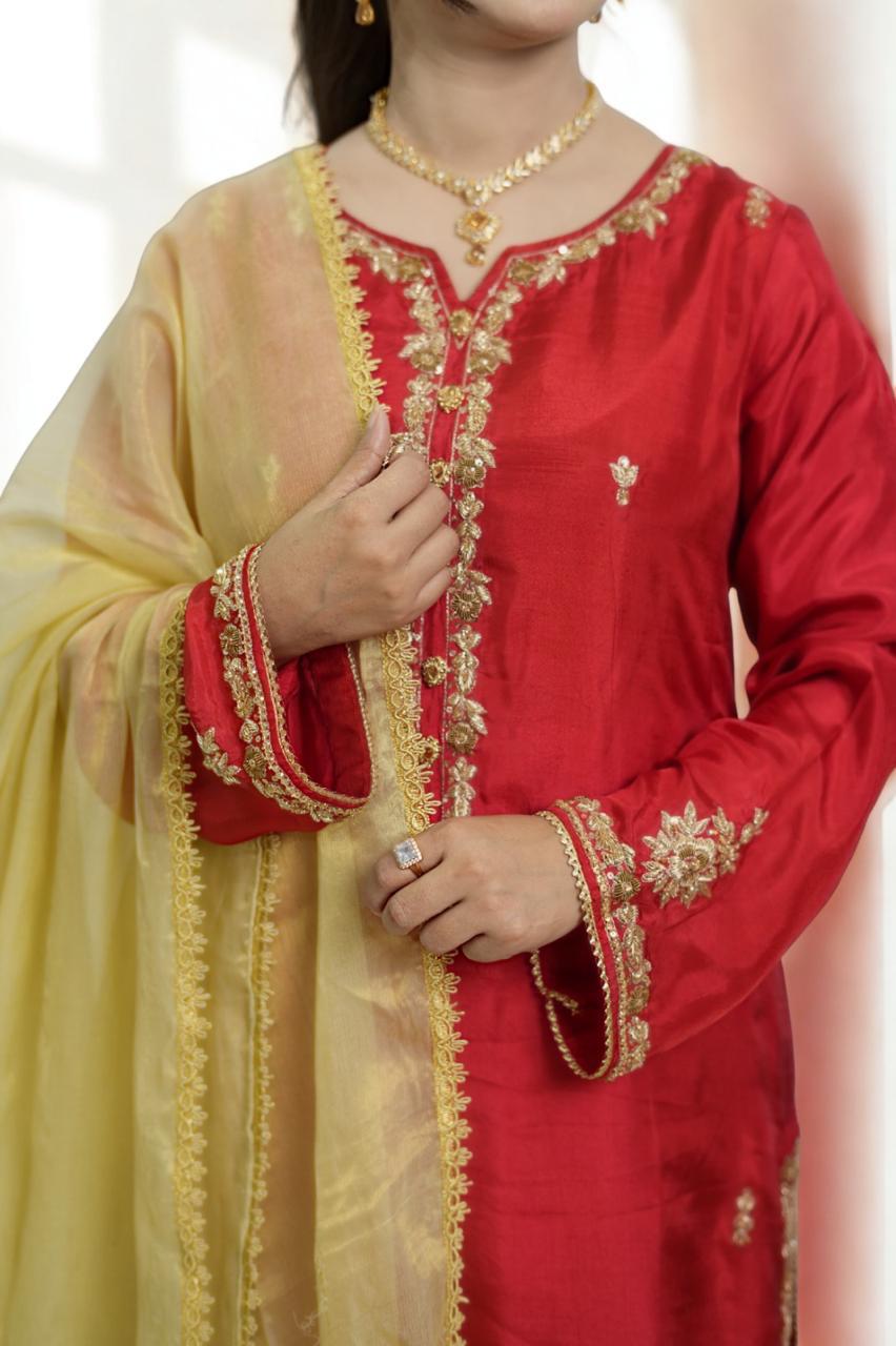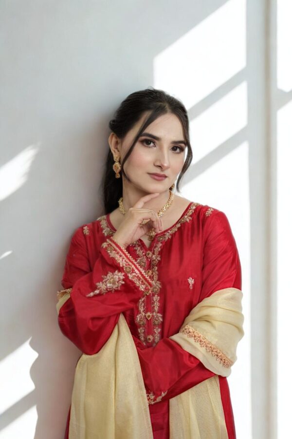 #luxurywear #AnazFashion #silkdress #RedElegance #weddingstyle #festivecollection #shoponline#