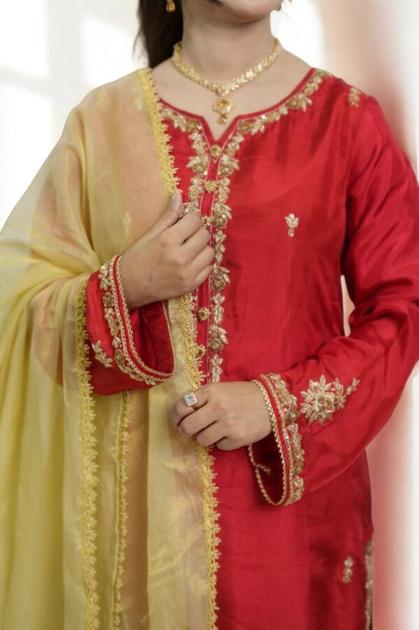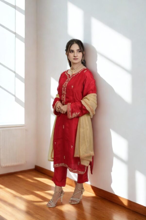 “Silk 3-Piece Dress in a mesmerizing red tone. 🌹
