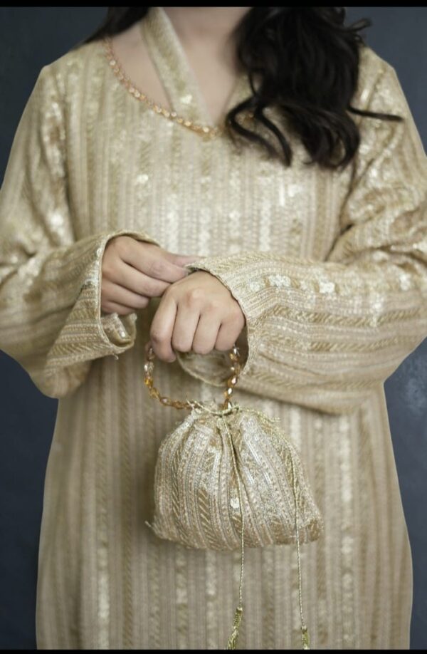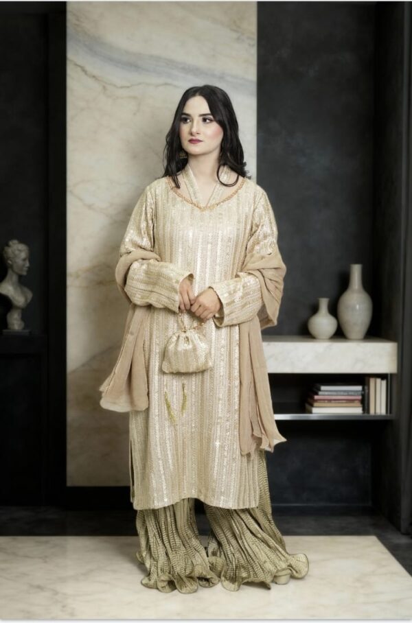 Chiffon tara work and embroidery shirt, crush plazu, chiffon Dubtaa, and, fanci bag.
